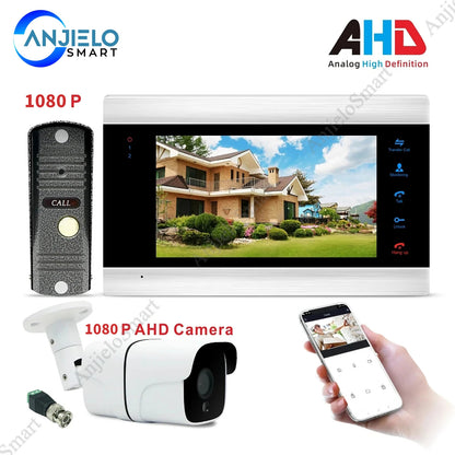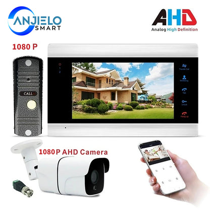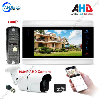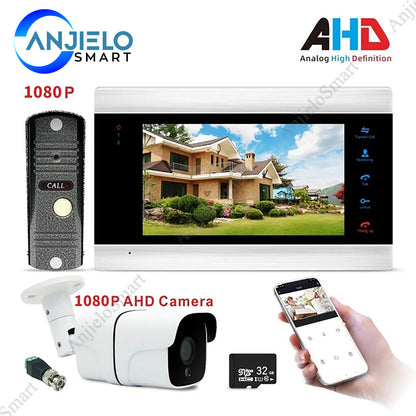 AnjieloSmart New WiFi Smart Video Door Phone Intercom Doorbell System 1080P AHD Call Panel+7 inch HD Monitor +1080P AHD Camera