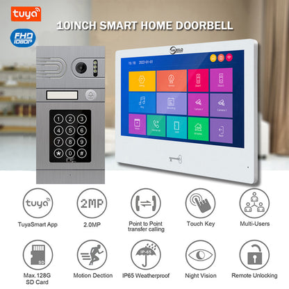 Smart Home 10 inch Wired Video Door Phone Intercom System Video Doorbell IR Night Vision Dual-way Intercom for Home Apartment Security